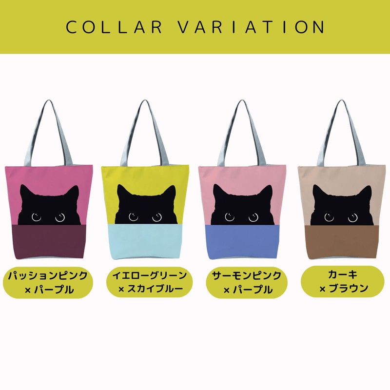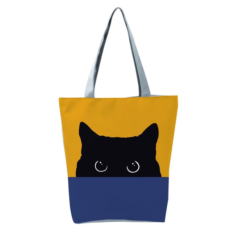 YasYouRi Women's Tote Bag, Cat Pattern, Zippered, Easy to Hold A4 Envelopes, Shoulder Bag, Training, Shopping, Eco Bag, PC, Tablet,, Yellow x Navy