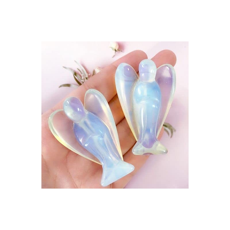 YATOJUZI 2''Opal Angel Decor Crystal Natural Stones Polished Hand-Carved Big Sculpture Statue Figurines Home Office Desk Decoration Healing Crystal for Women Men