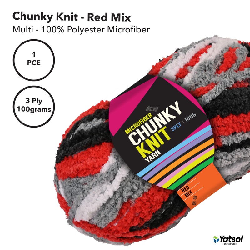 Yatsal Microfibre 3-Ply Chunky Knitting Yarn 100 g, Red Mix