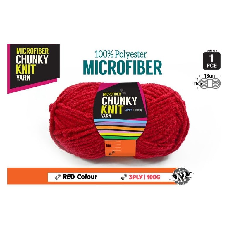Yatsal Microfibre 3-Ply Chunky Knitting Yarn 100 g, Red