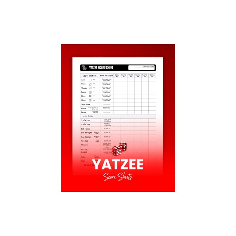 Yatzee Score Sheets: Large Print Scorekeeping Pads for Yahtzee, Yardzee, and Dice Games (8.5x11 Inches)