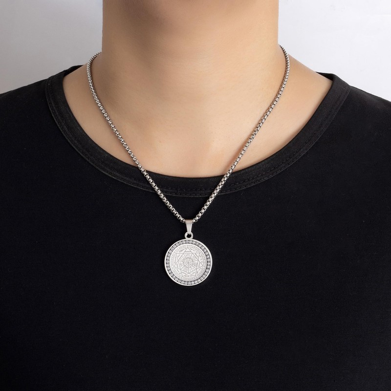 YAUFUZE Seven Archangels Pendant Necklace For Men Women Protection Amulet Archangel Michael Coin Pendant Necklace Gabriel Uriel Spiritual Zircon Stainless Steel 22+2 inches (To My Son, Silver)
