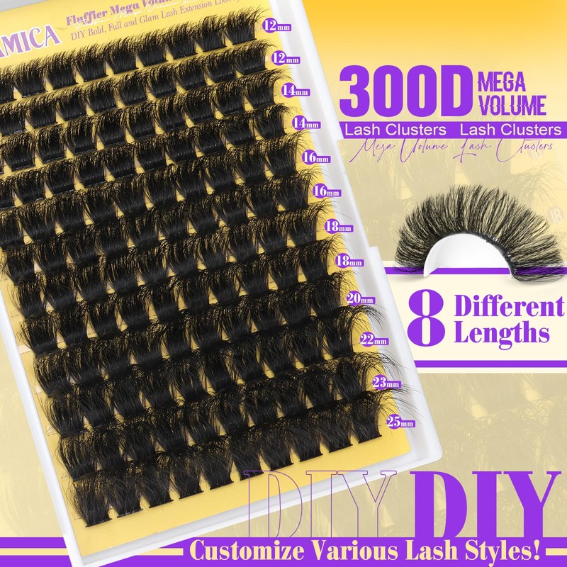 - Mega Volume Eyelash Clusters with Easy Application: Fluffy lashes clusters are designed with mega full volume and range from 12mm to 25mm in length, providing a flirty and bold lash extension look, super easy to apply in only 5 minutes perfect for beginners and pros.