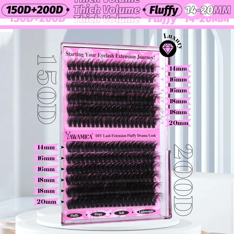 * Lash Specification: 14-20mm Lashes Clusters 150D+200D Volume