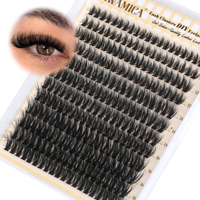 Yawamica Wispy Lash Clusters Natural Cluster Eyelash Extensions Fluffy Eyelash Clusters C Curl Individual Lashes 10-18mm Cluster Lashes Waterproof DIY Lash Extension at Home by Self