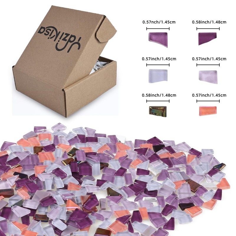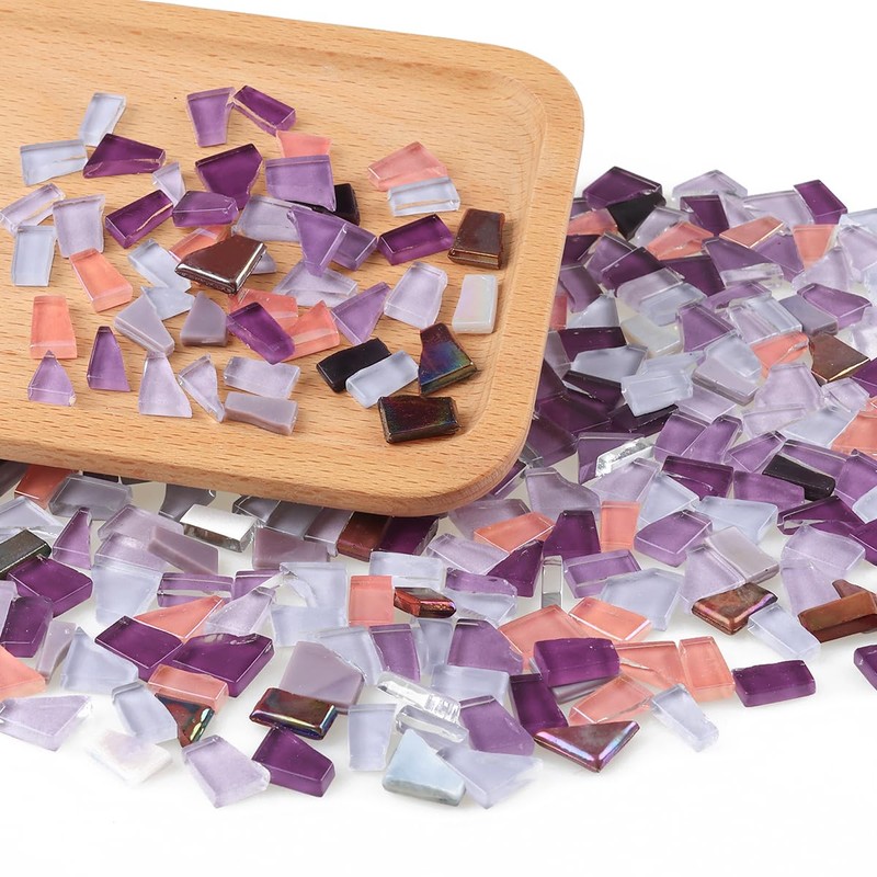 Yazikisa 1.1 lb Mixed Shapes Crystal Mosaic Tiles Purple Glass Tile Pieces Tiny Decoration for Crafts Bulk Stained Scraps DIY Making Supplies Bathroom Plates Handmade Supplies