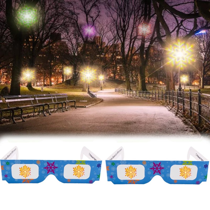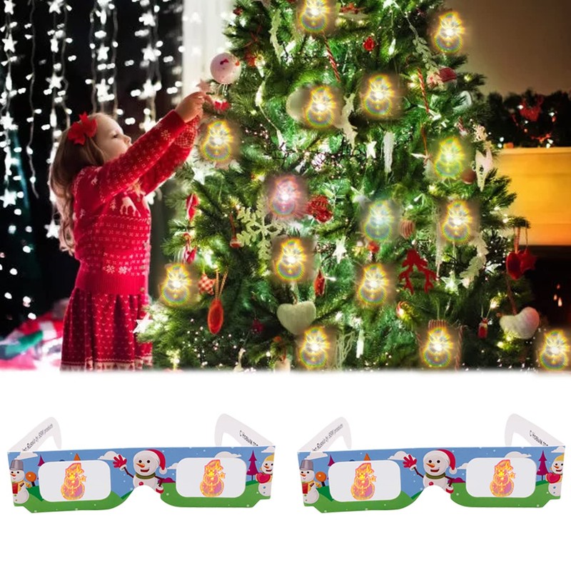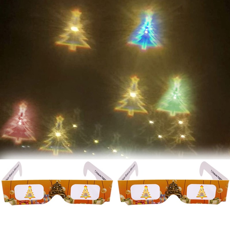 - ❉[Fantastic visual presentation] This is a novelty 3D glasses you won't want to miss, you won't believe your eyes when you look at the light source through these glasses, you will find that every bright spot turns into a magical Christmas 3d shape, they are perfect for you to watch your Christmas tree, neighbor's house, park or street at night.