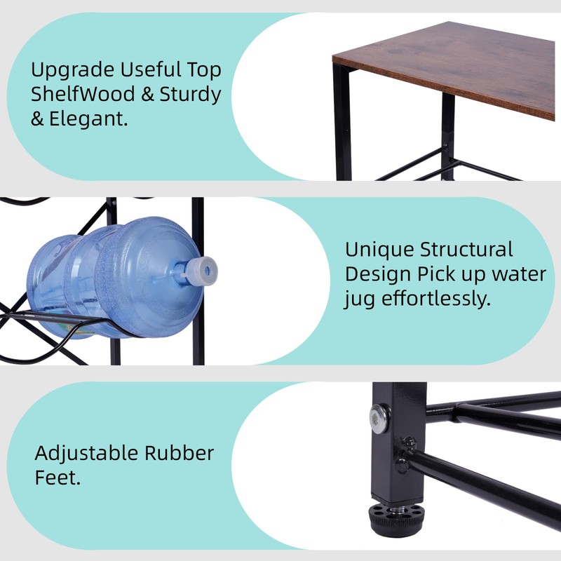 - [Upgrade Useful Top Shelf]-Our 5 gallon jug holder upgrades the practical tabletop layer. Adds functionality for countertop water dispensers, coffee mugs, potted green plants, decorations and more. Upgrade your storage solution with style and efficiency