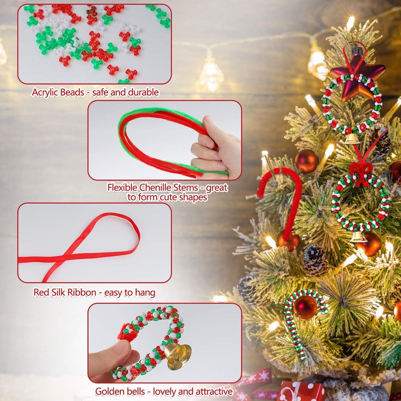 - Wide Uses: Ideal for holiday decorating, jewelry-making, and classroom activities. Use the kit to make Christmas ornaments, candy cane, wreath, bracelets, necklaces, keychains, or to add a personal touch to your Christmas décor. This all-in-one craft set is your go-to choice for festive DIY projects