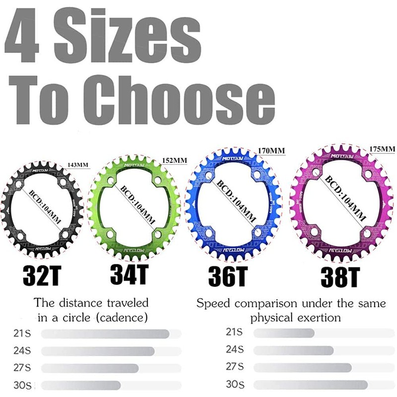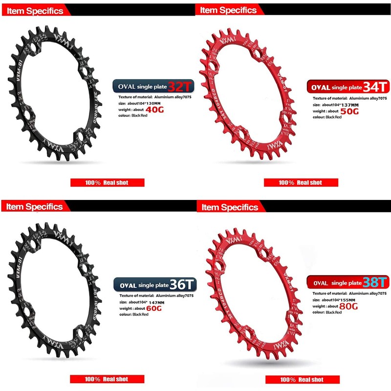 - ☆ 104 BCD CHAINRING - 104BCD Round Oval Narrow Wide Single Bike Chainring for 8 9 10 11 Speed Mountain Bike Road Bike MTB BMX. The Versatility of the 104 BCD, Stop dropped chains, install simply. Please carefully confirm the specification of crank 104 BCD before purchasing