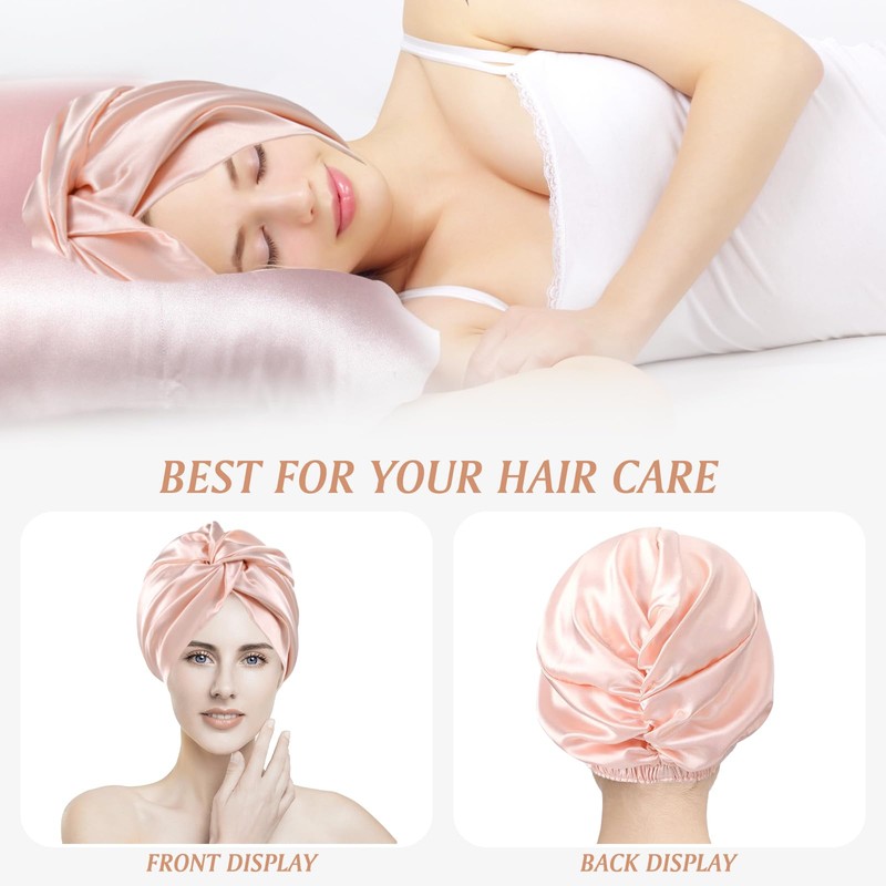- đź‘’SATIN BONNET DOUBLE-LAYER: Say goodbye to restless nights and morning hair woes with our double layer satin sleeping bonnet. Our unique design ensures a comfortable and secure fit, Made from soft and gentle materials, it won't slip down or leave any marks on your face while you sleep.