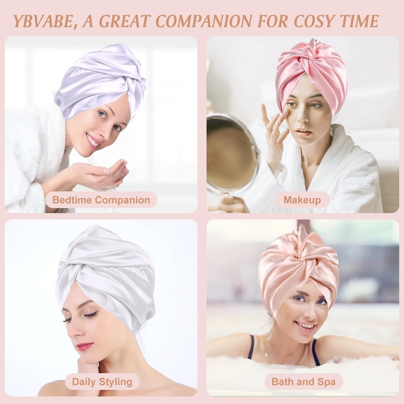 YBVABE Satin Bonnet and Scrunchies Set - Multipurpose Hair Cap and Shower Cap - 6Pack Silk Satin Accessories for Hair Protection and Style Preservation - Haircare Accessories for Women (Rose gold & Silver)