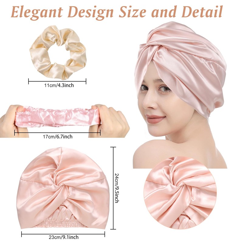 The silk bonnet in this set is not just for nighttime use; it doubles as a convenient shower cap. With its water-resistant properties, you can confidently wear the bonnet during your shower or bath, shielding your hair from water and humidity. Enjoy the convenience of a hair cap and shower cap in one elegant accessory.