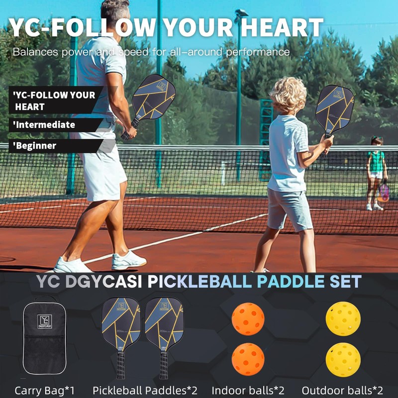 - 【Cost-effective suit】USAPA Pickleball Approved, If you buy our Pickleball Paddle Set, you will get 2 rackets, 4 balls, 1 storage bag. Save all your purchases on the field in one go, saving your shopping time. Every YC DGYCASI pickleball paddle is designed to be an awesome pickleball paddle for either a beginner or a professional player.