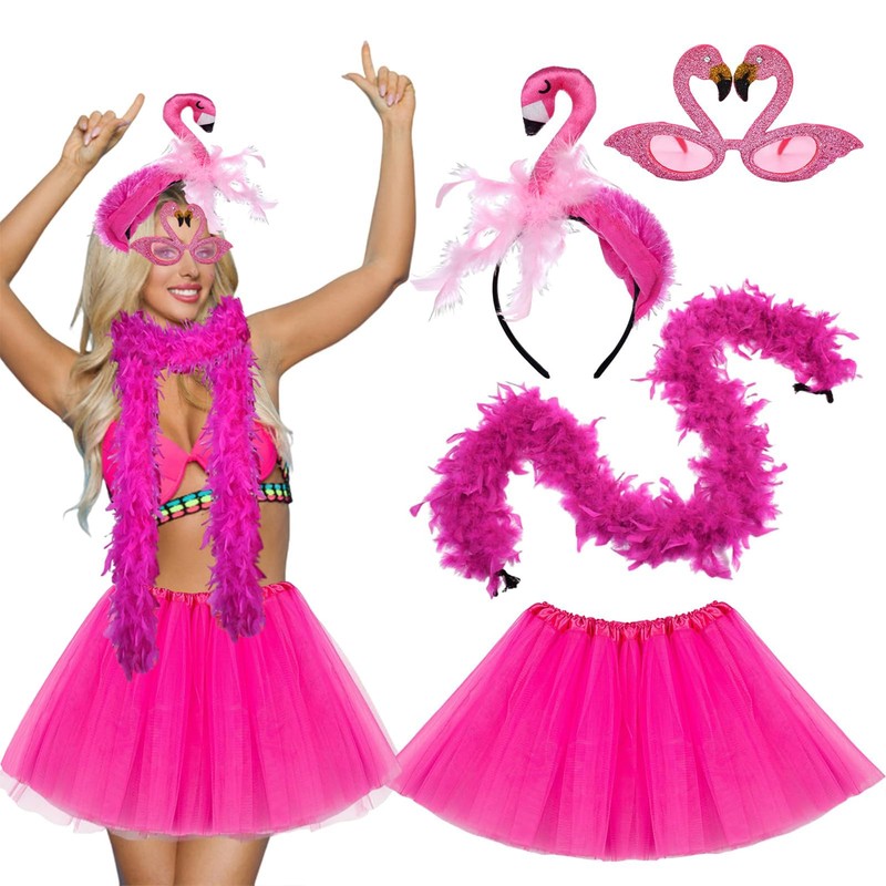 - Full flamingo costume set: this flamingo costume set contains everything you need for an unforgettable appearance. It includes an elegant tutu skirt, a flamingo headband, unique shape flamingo sunglasses and a fluffy pink feather scarf. Perfect for any party or celebration!