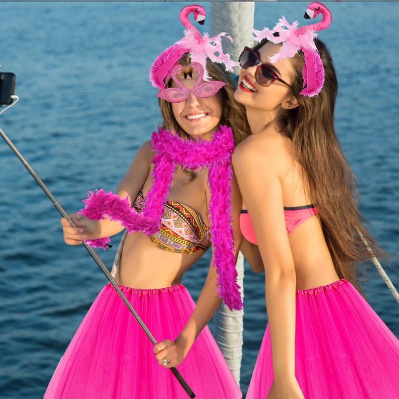 - Ideal for many occasions: whether carnival, fancy dress or summer party, this flamingo costume is suitable for many different events. With the tutu skirt, flamingo headband, sunglasses and feather scarf, you are well equipped for luau parties, beach parties or themed parties.