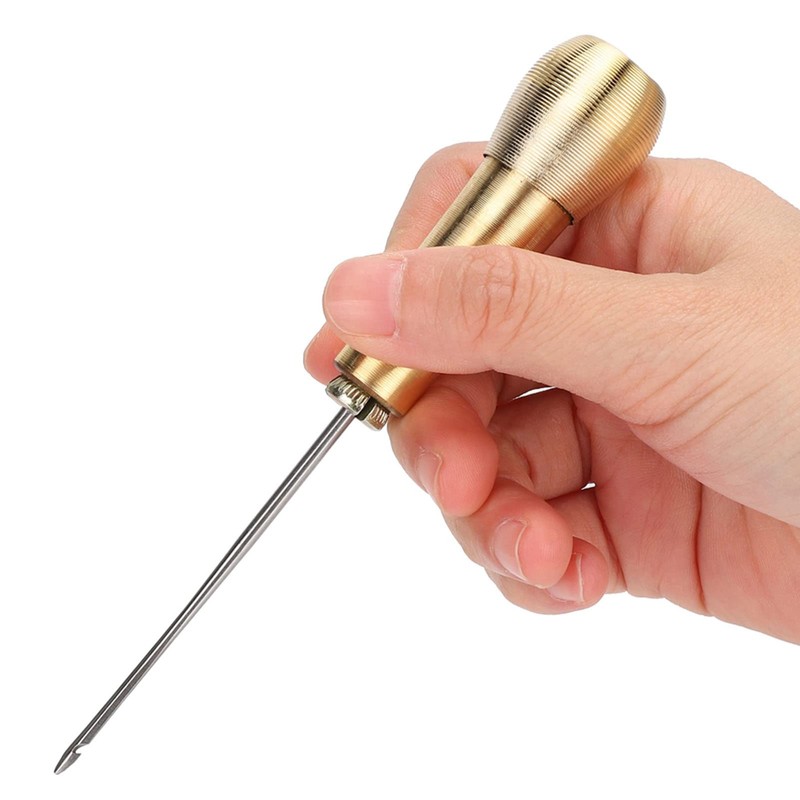 - ▶Cómodo:fácil de agarrar, este punzón hecho con precisión se adapta perfectamente a su agarre para ayudarlo a trabajar su cuero en el mejor ángulo; Aspecto exquisito, el color dorado puede revelar moda y nobleza.