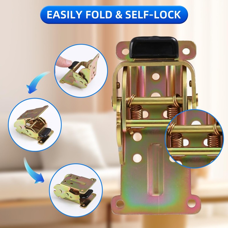 - 【Versatile Application & Stylish Finish】Ideal for folding furniture, including bed legs, desk supports, cabinet doors, and more. Available in elegant black, gold, or silver finishes to match your style.