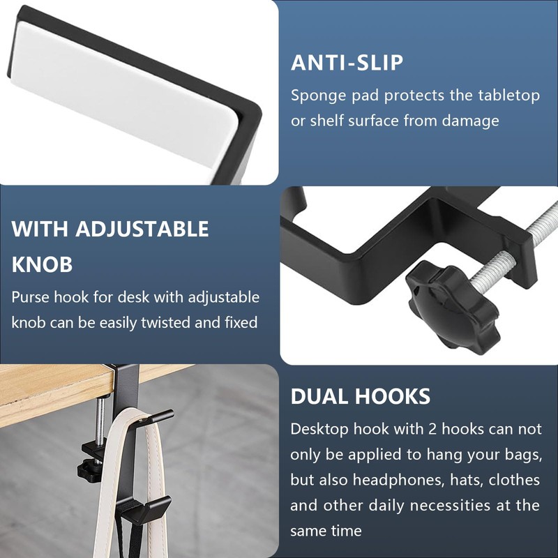 📐Keep your desk clean with this set of 2 sturdy hooks that can be adjusted to fit tables of any size or thickness.