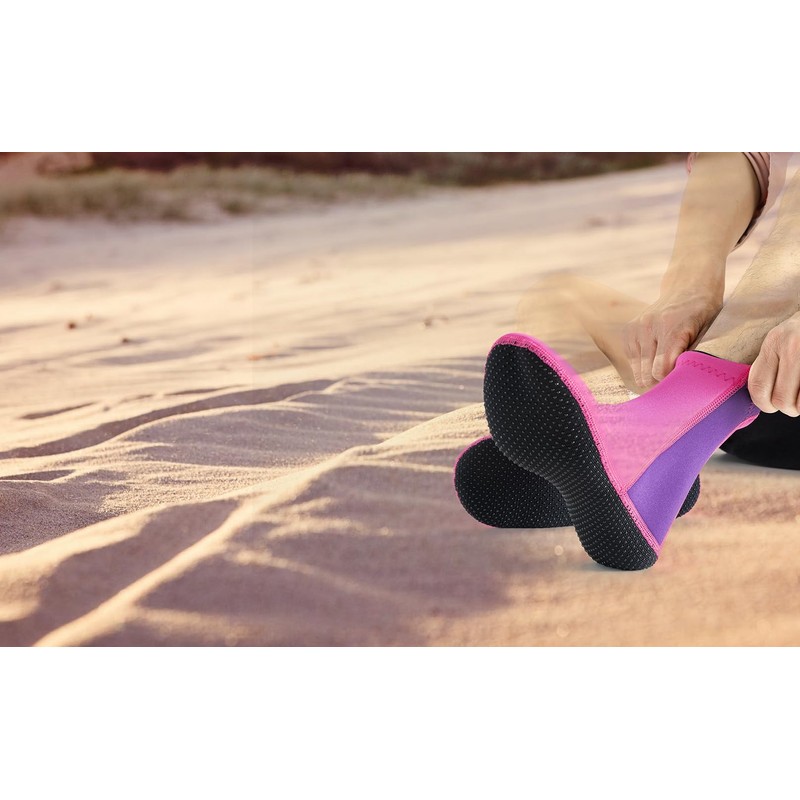 - NON-SLIP DESIGN: The bottom sole adopts anti-slip rubber silicone pattern, which can give you great grip and friction when water sports, even though the diving socks sole is wet or sometimes you walking on a rough ground or a beach.