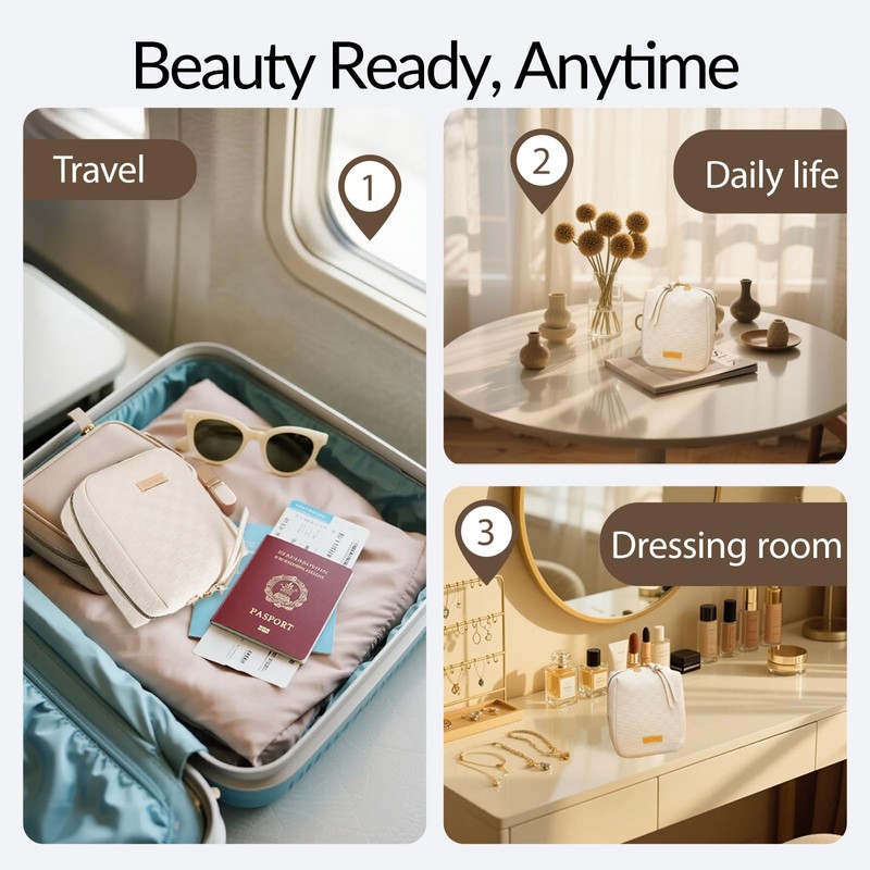 - Portable Makeup Bag: This compact and lightweight,makeup bag fits in most handbags and is easy to carry around. It is perfect for travelling, holidays, dates, parties, business trips, amusement parks, hiking and other occasions.