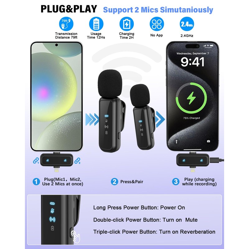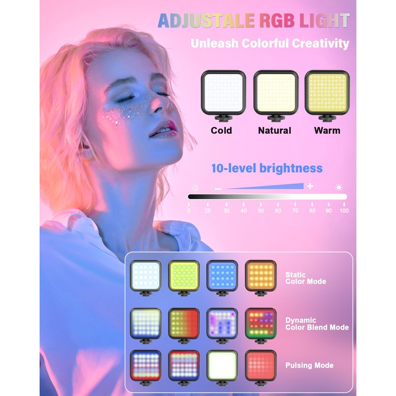 - Crystal-Clear Sound&Adjustable RGB Lighting: Our wireless microphone delivers clear, crisp sound, making sure your voice is heard loud and clear. With a long-range transmission and easy-to-use design, you can move around freely while recording, knowing that your audio will be perfect every time. Fine-tune your setup with pro-grade lighting10 brightness levels and 6 modes. Cold, Warm, or Natural tones ensure accurate skin tones, while RGB modes (Solid, Gradient, Flash) set the mood
