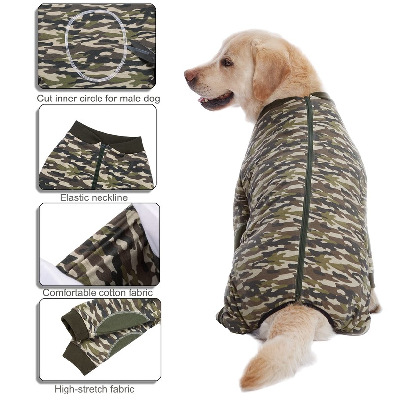 Yeapeeto Dog Onesie Surgery Recovery Suit for Large Medium Bodysuit Dogs Pajamas PJS Full Body for Shedding, Prevent Licking, Wound Protection, Cone Alternative (XL, Camo)