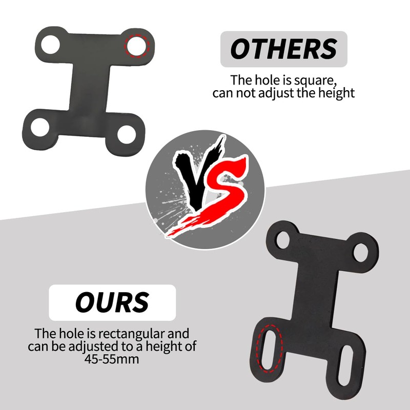 - ADJUSTABLE: Adjustable design from 45 mm to 55 mm to reduce the friction between the fender and tire. You can adjust it according to your needs. Compared with ordinary small design which can not adjust the height, our hole pattern is rectangular, this height difference can prevent serious accidents, resulting in casualties, avoid accidents and tire damage.