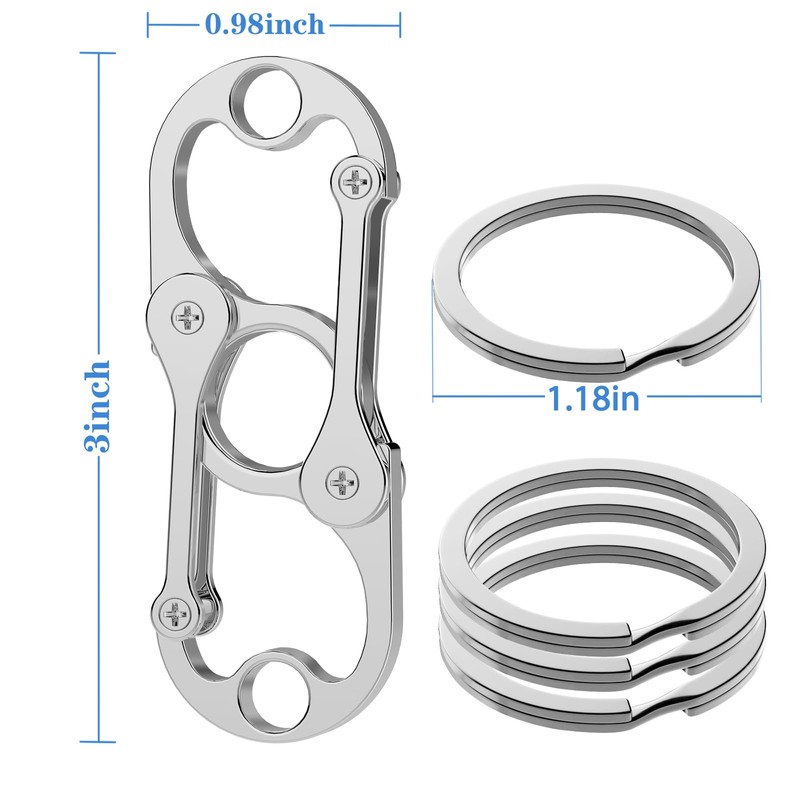 Yebongda Special Key Chain, Heavy Duty Carabiner Clip Keychain Opener with 4 Key Rings for Men and Women (Silver)