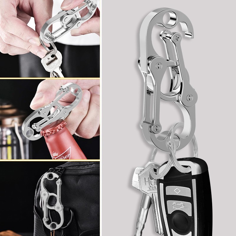 - Multitool Keychain Carabiner: This is an very day work item as you require multiple keys during the day and over the year have tore up multiple belt hoops from the regular clips. Key chain ensures that your keys stay securely attached, and the invisible bottle opener to open a cap to around perfect for who are always on the move.