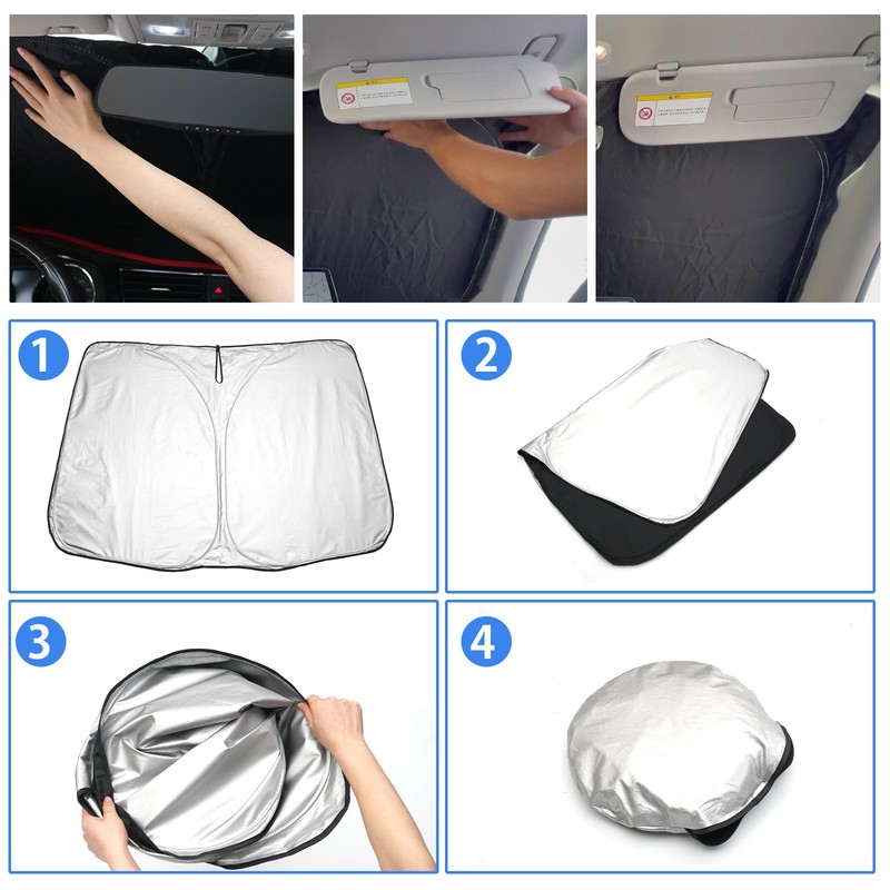- Einziehbar und einfach zu bedienen: Unser Sonnenschutz für die Windschutzscheibe ist zusammenklappbar und wird mit einer Tasche geliefert, die Sie einfach in Ihrem Auto verstauen können. Zur Verwendung einfach das Autofensterrollo aus dem Beutel nehmen, auseinanderfalten und gegen die Windschutzscheibe lehnen.