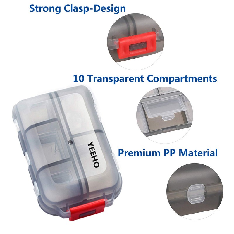Yeeho Pill Case - Portable Small Supplements Tablet Container Box with 10 Compartments - Medicine Capsule Vitamin Organizer Dispenser Holder Storage for Travel Trip Pocket Purse-Translucent Black