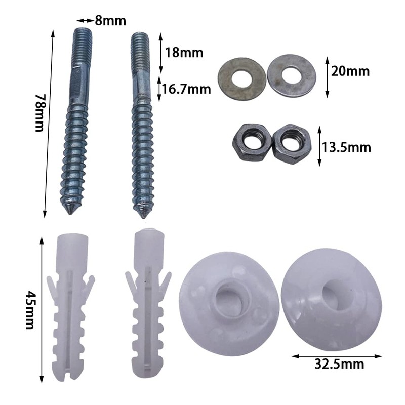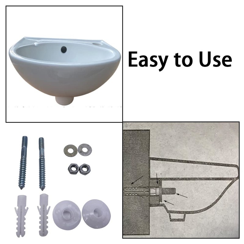 yeenelwboo 2 Sets Bathrooms Fitting Kit Screw Bolts Wall Mounted Basin Fixing Kits Screws Plug Washers for Wall Mount Basin Sink
