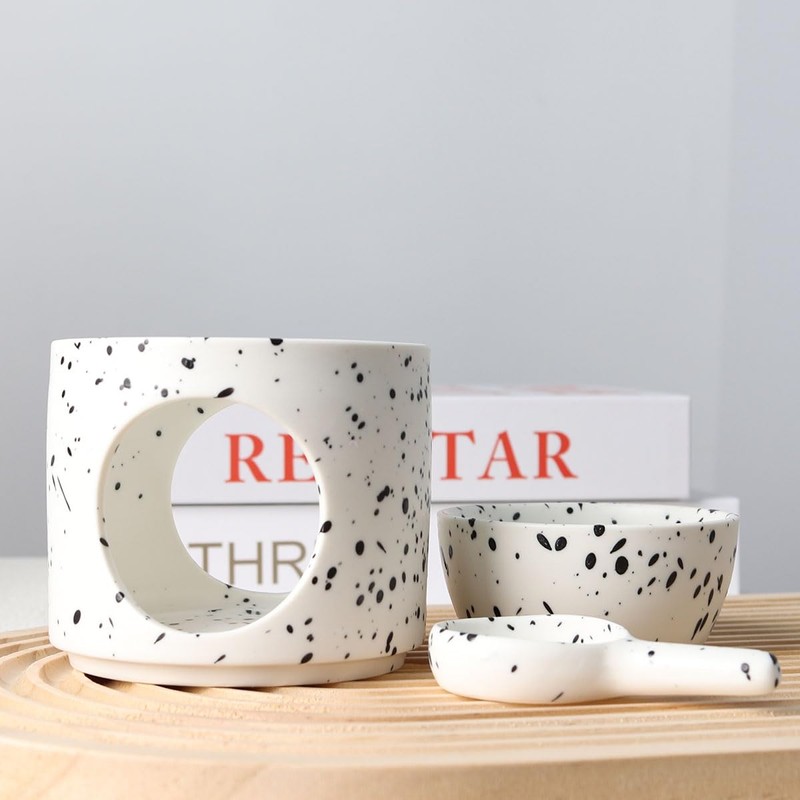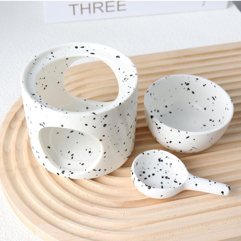 Yeerockal - Difusor de aceite de cerámica con soporte para canlde (salpicaduras de tinta)