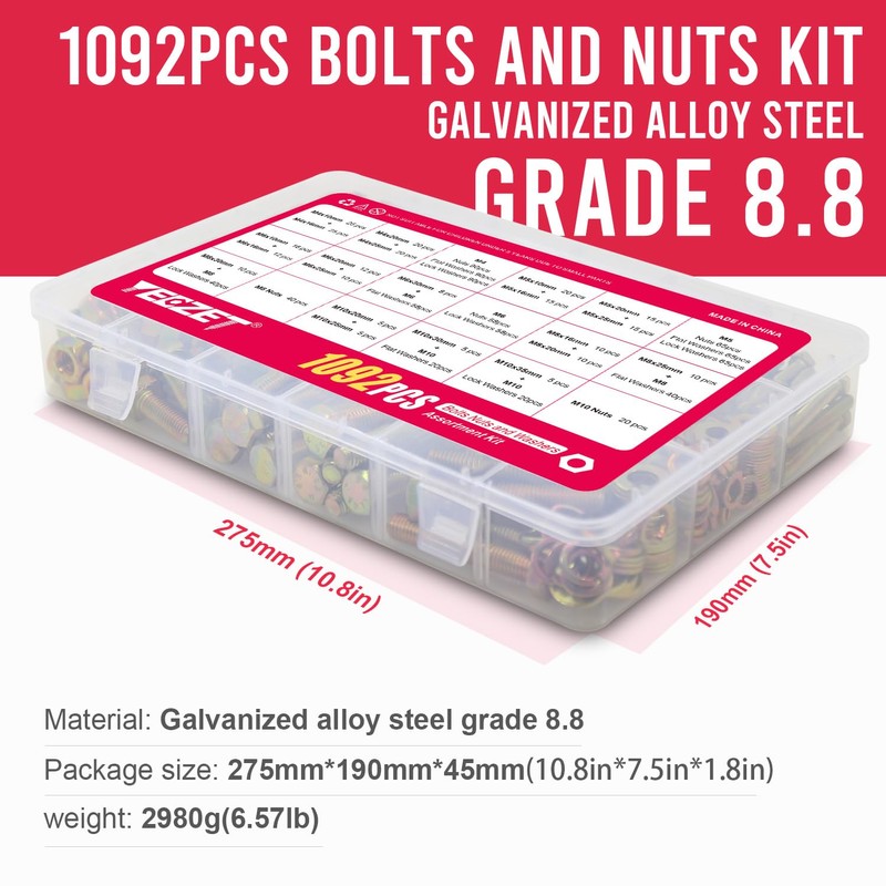 | Color: | M4, M5, M6, M8, M10--Bolts and Nuts Kit (1092PCS) |