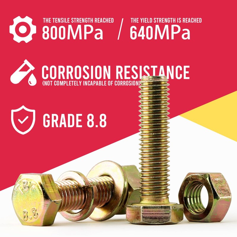 - 🚩HIGH QUALITY TO BE TRUSTWORTHY. 8.8 Grade Alloy Steel, corrosion resistance property, features good wear resistance, high hardness and high strength, can be used in extreme environments.