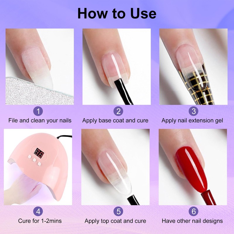 - Safe & Healthy: Our gel builder boasts natural ingredients, ensuring a healthy nail experience without harsh chemicals or adhesives that could damage nails. It is low in odor, and skin-friendly.