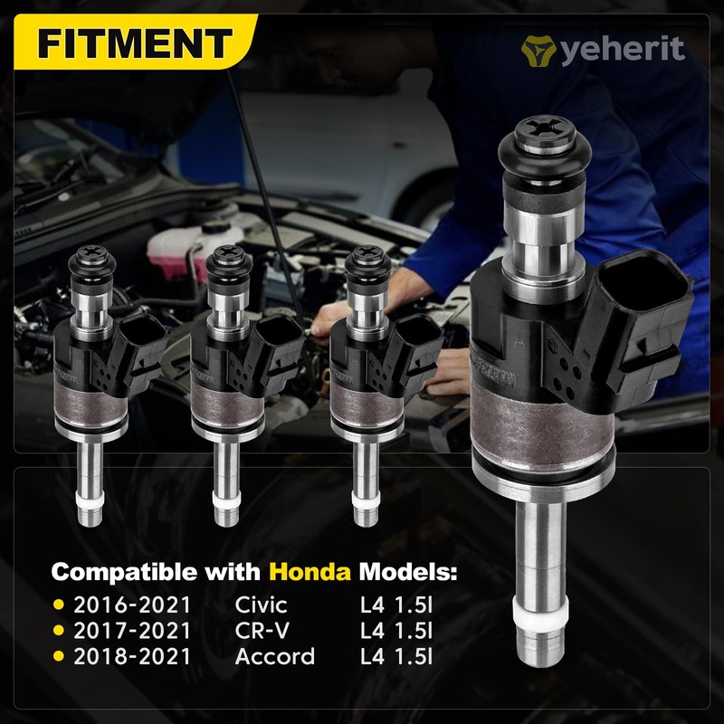 YEHERIT Set of 4 Fuel Injectors Compatible with Honda Accord 2018-2021, Civic 2016-2021, CR-V 2017-2021 L4 1.5L, Replace# 160105PA305, 1601059B305