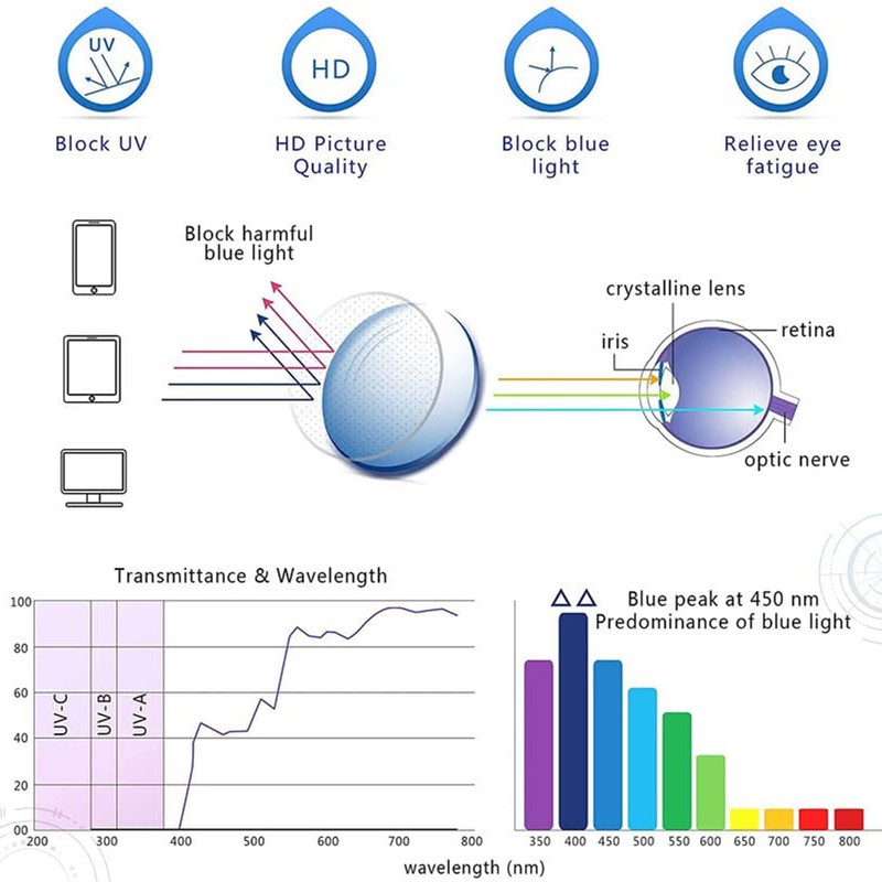 - Blue Light Blocking Technology: Protect your eyes from harmful blue light, a wide selection of glasses for your needs.