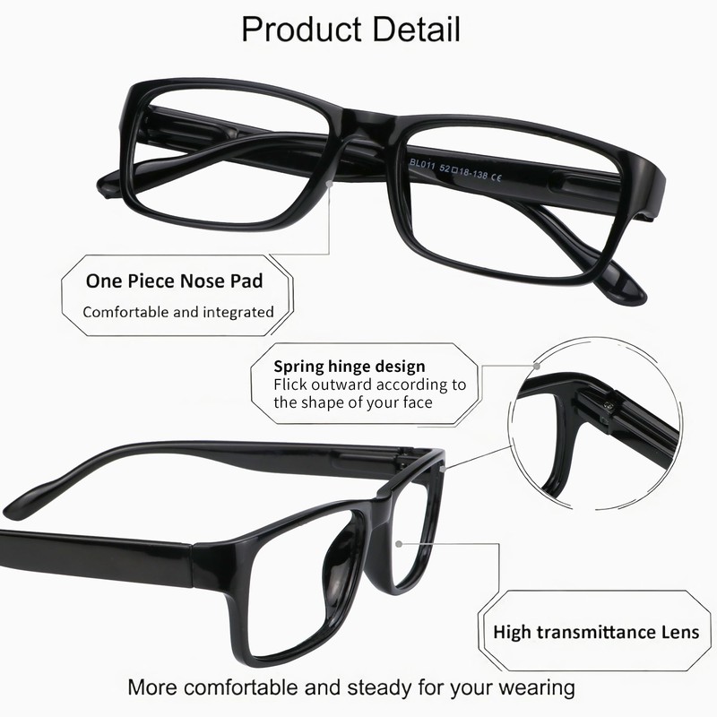 - Comfortable Design: They sport a one-piece design and spring hinge. The classic rectangular frames crafted for ultra-lightweight wear, offer a universal fit that suits different face shapes and sizes.