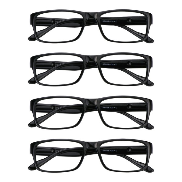 YEIN Blue Light Blocking Reading Glasses,4 Pack Men’s and Women’s Rectangular Black Frame(Black,+2.50 Magnification)