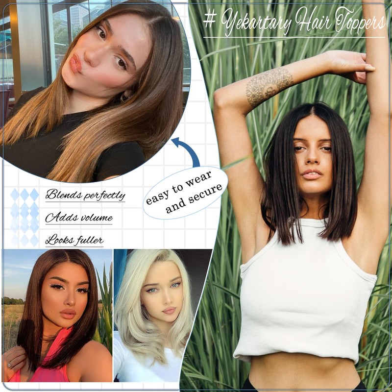 - 360° Cover: This topper is a Bob style without bangs. The hair of the topper can blend perfectly with the original hair and also add volume to the hair. 360° full coverage hides your grey roots for a fuller, healthier hairline