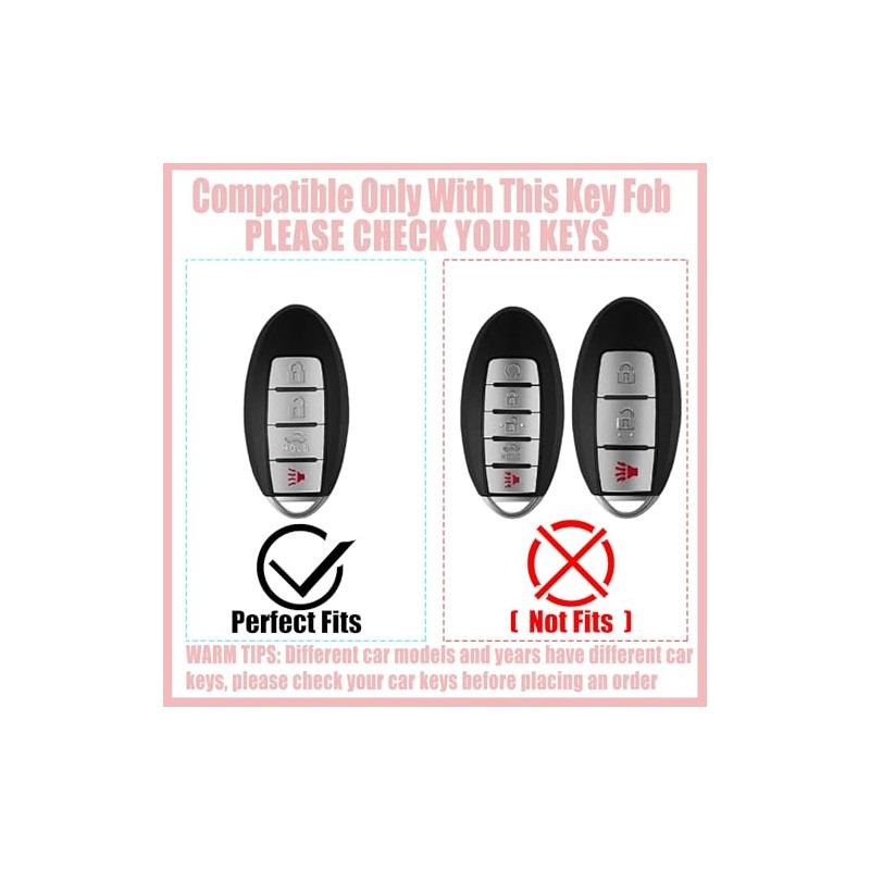 Fits 4-button key fobs compatible with Nissan Altima 2007-2018 ,Murano (2011-2020, 2022) ,Sentra 2015-2023 ,Rogue (2008-2019,2021,2015) ,Pathfinder 2008-2019 ,Titan XD 2016, 2018 ,Rogue Sport SV/SL 2017-2022 ,Armada 2017-2020 ,Leaf (2017-2020, 2022) ,Titan (2017,2018,2020,2021,2024) ,Pathfinder/GT-R 2017-2022 ,Maxima 2008-2019 ,Kicks 2018-2022 ,Versa 2020-2022 ,370Z 2009-2010 -please confirm compatibility via the product image before purchasing.