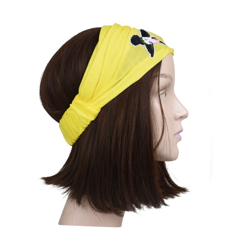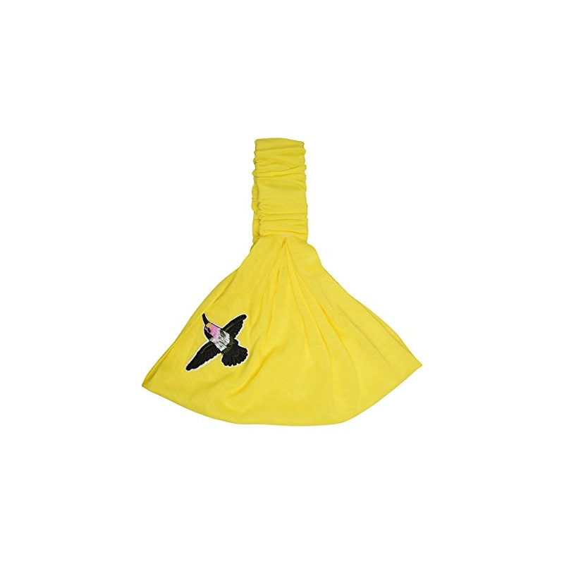 Yellow Cotton Headwrap with Hummingbird Applique for Women