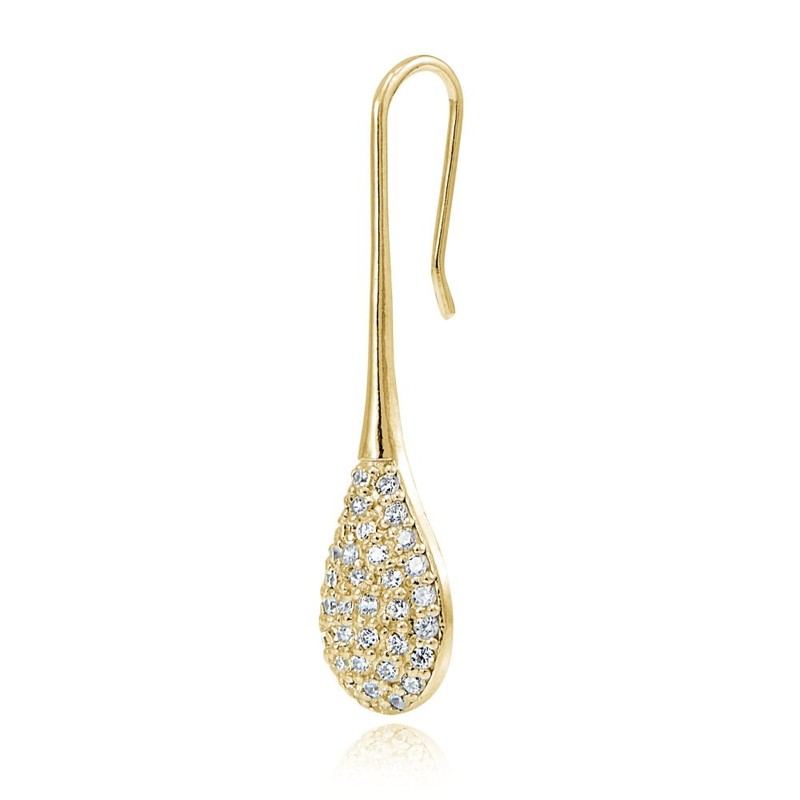 Yellow Gold Flashed Sterling Silver Cubic Zirconia Teardrop Hook Earrings