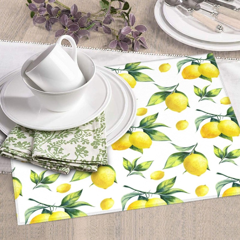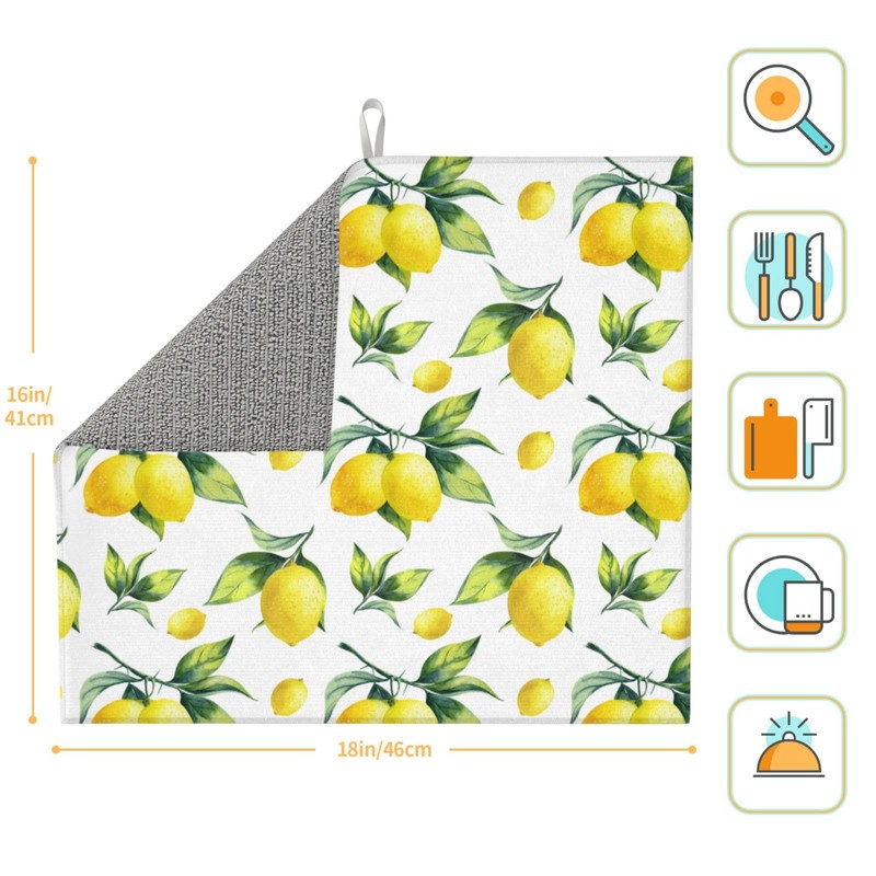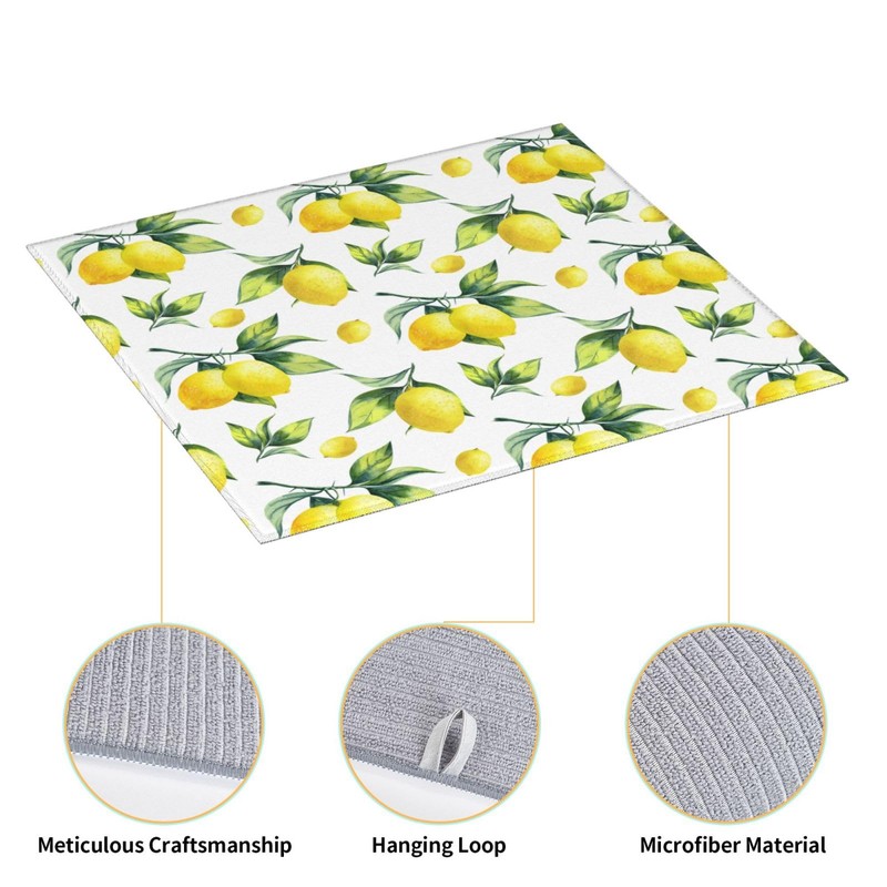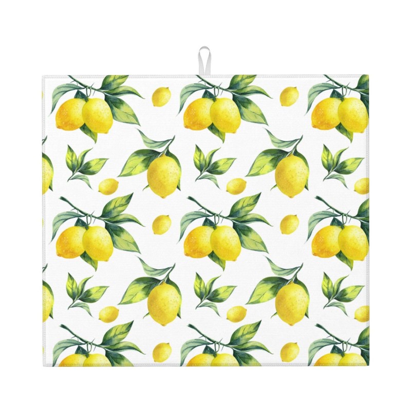 Yellow Lemon Green Leaves Dish Drying Mat For Kitchen Counter Microfiber Absorbent Dish Draining Webbing Lanyard Reusable Easy Clean Large 16" X 18"