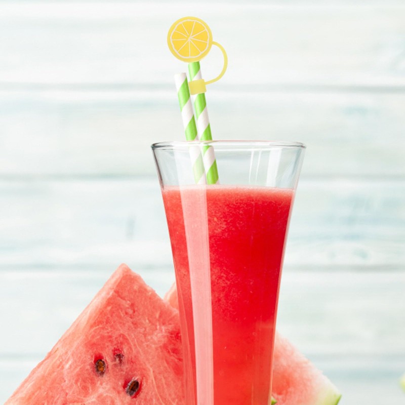 Yellow lemon Straw Cover Cap Reusable Silicone Straw Toppers Drinking Straw Tips Lids Drinking Dust Cap for 6-8 mm Cute Straws Plugs Straw Tips Cover Disposable Drinking Straws Paper and Plastic