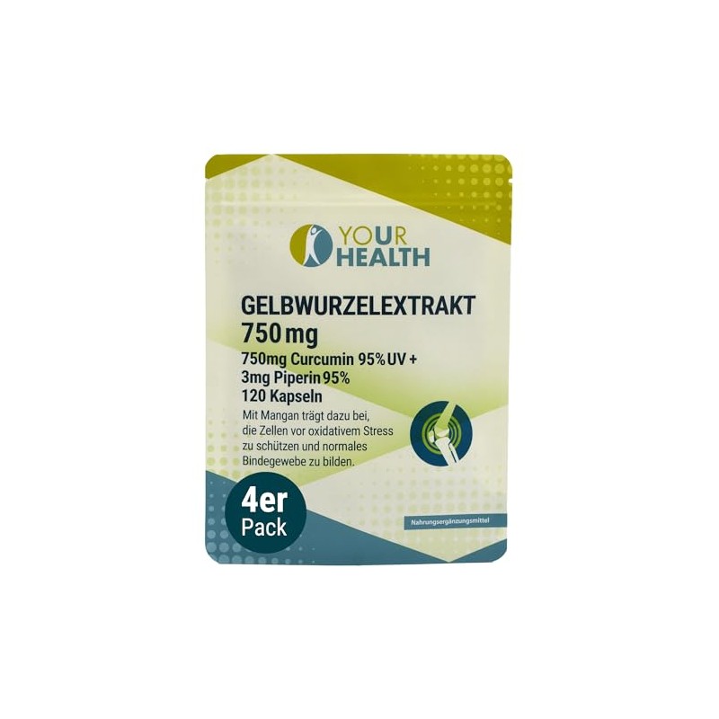 Yellow Root Extract 750mg Curcumin 95% UV + 3mg Piperine 95%; in Vegetable Capsules; with Manganese - 480 Capsules (Pack of 4)
