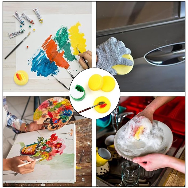 - Craft Sponges The sponge painting kit includes 30 pieces yellow round sponges, you can completely immerse them in water after receiving it, squeeze out the water after fully absorbing the water, and let it dry. Odourless and non-toxic, it is safe to use all kinds of water-based acrylic paints for painting face and skin, and you will not feel tired if you keep them for a long time.