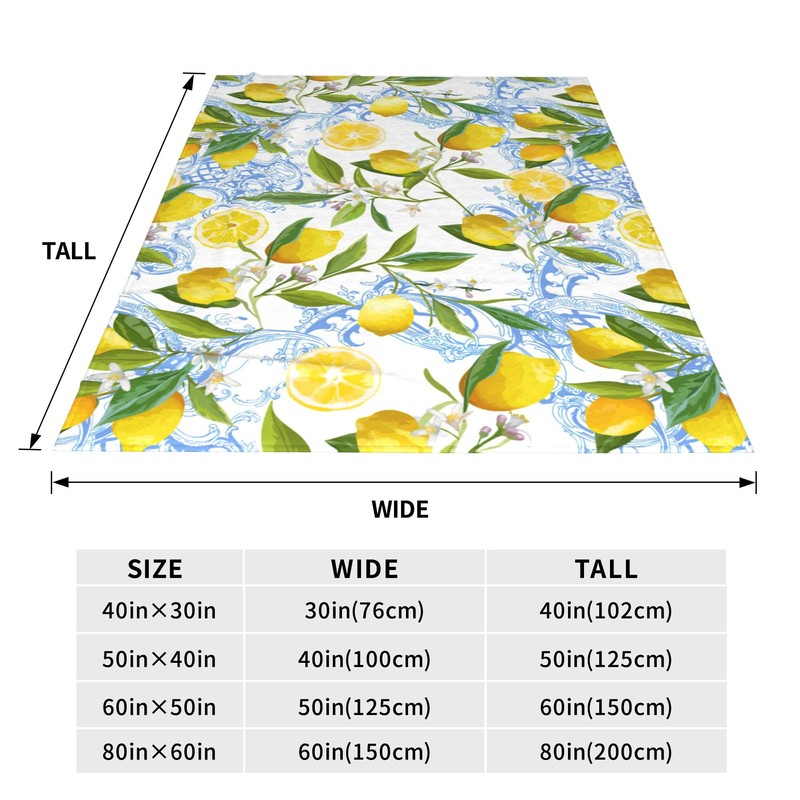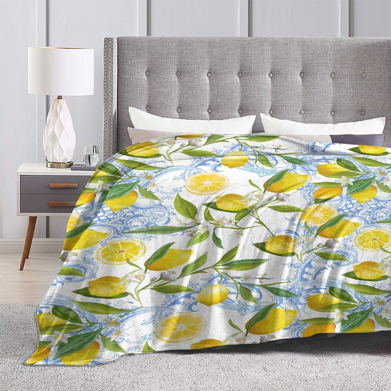 Yellow Throw Blanket Gifts Lemon Fruit Floral Leaves Throw Country Spring Summer Rustic Lightweight Soft Cozy Blankets for Women Kids Adults Girls Boys Birthday Bedroom Camping Decor 50"x40"